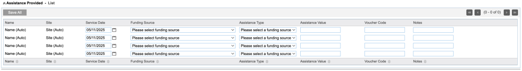 - defaults to current date, edit the date is required when entering past assistance